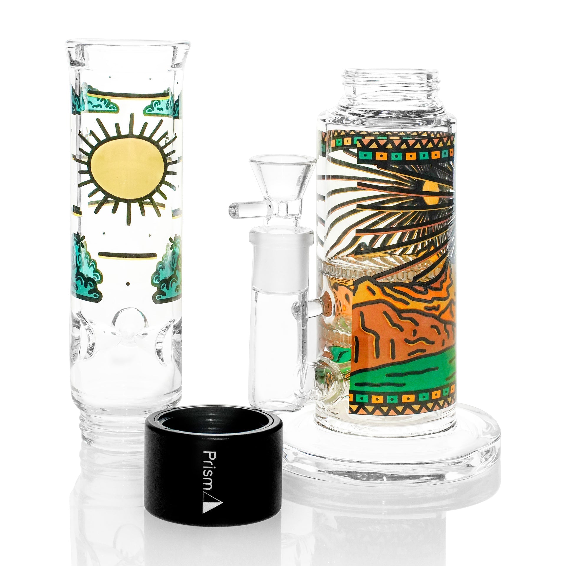 Meet the Desert Dream’n Big Honeycomb Single Stack! This standout Prism Classic piece boasts a unique desert design and delivers milky smooth hits thanks to its two honeycomb percolators and straight percolator downstem for even smoke distribution. With our custom bong system, cleaning, swapping parts, customizing, and packing for adventures are a breeze. Enjoy a striking look and effortless convenience with every session!