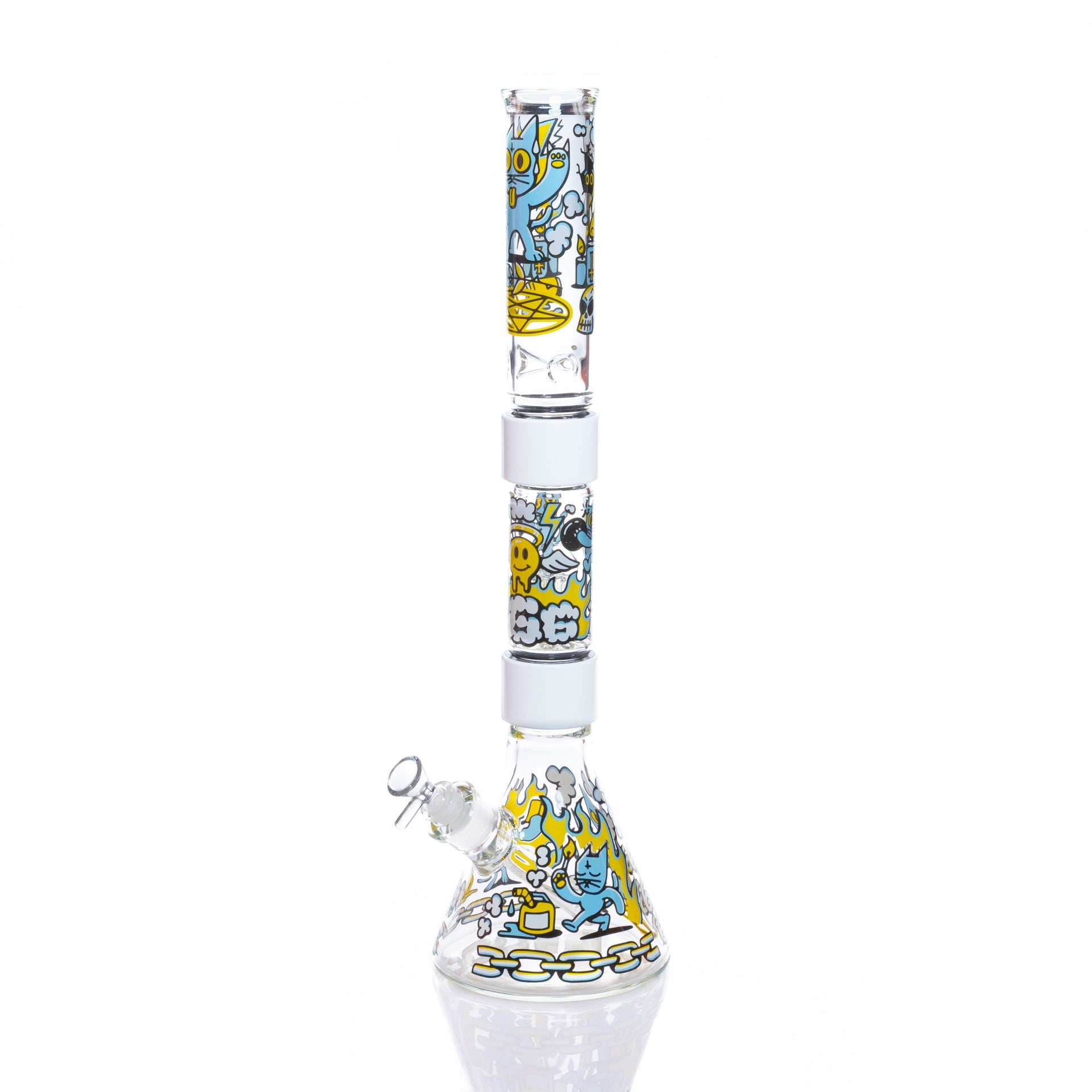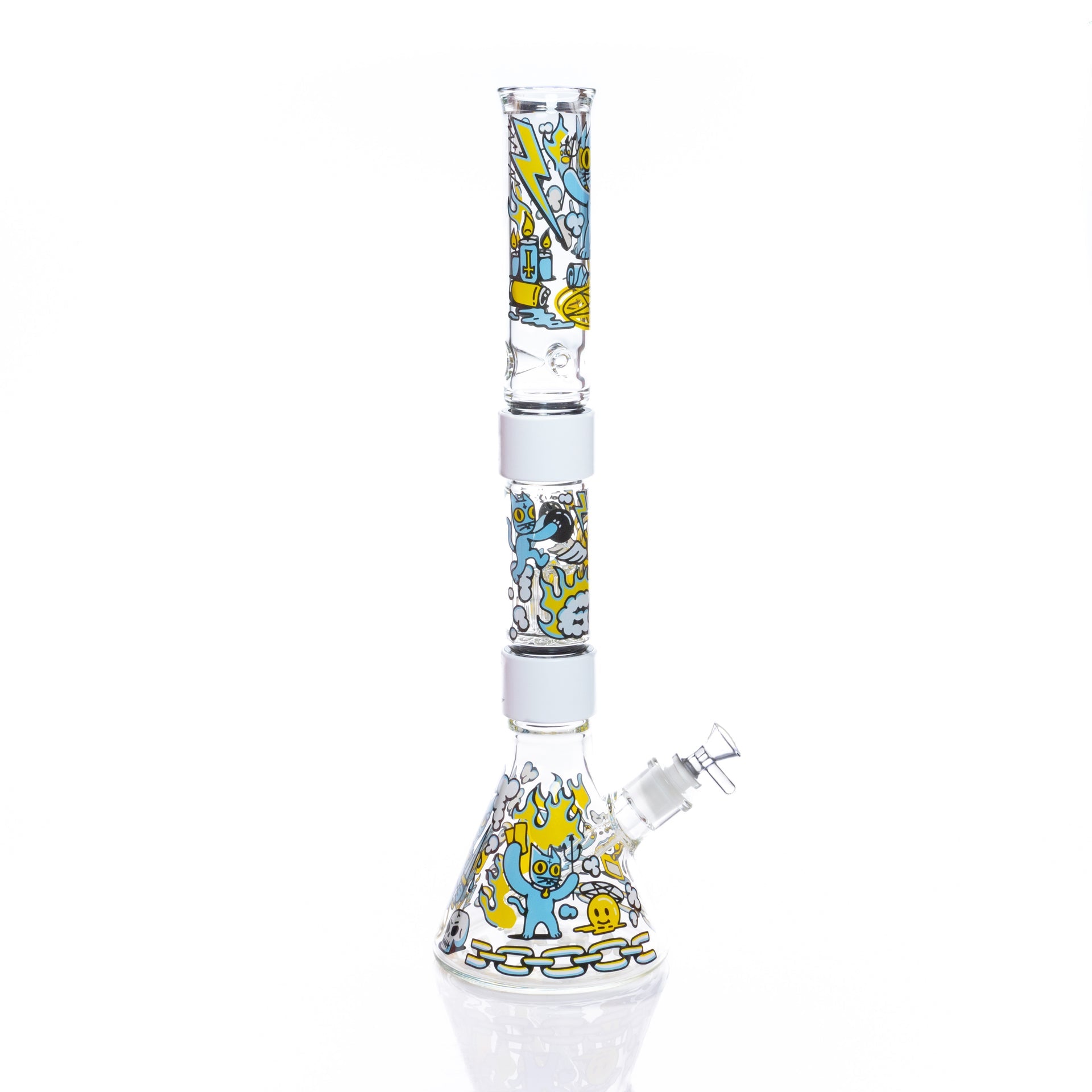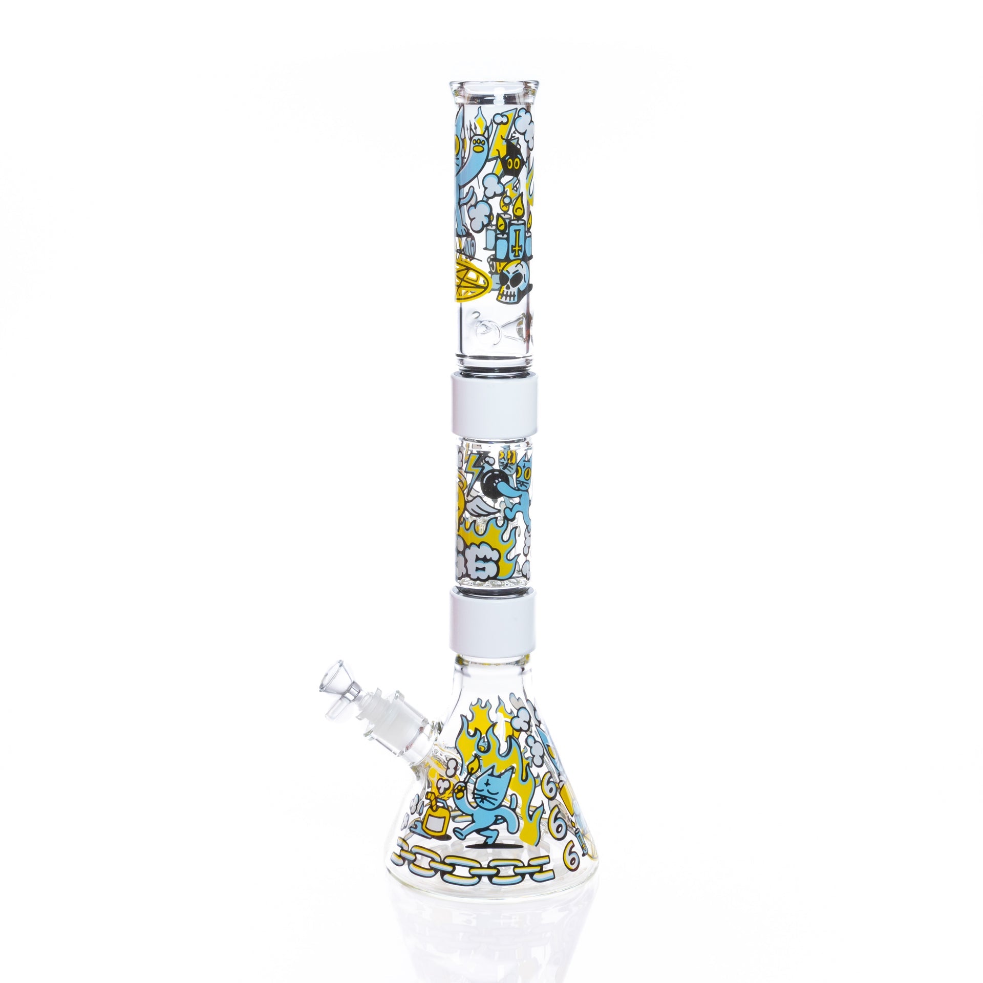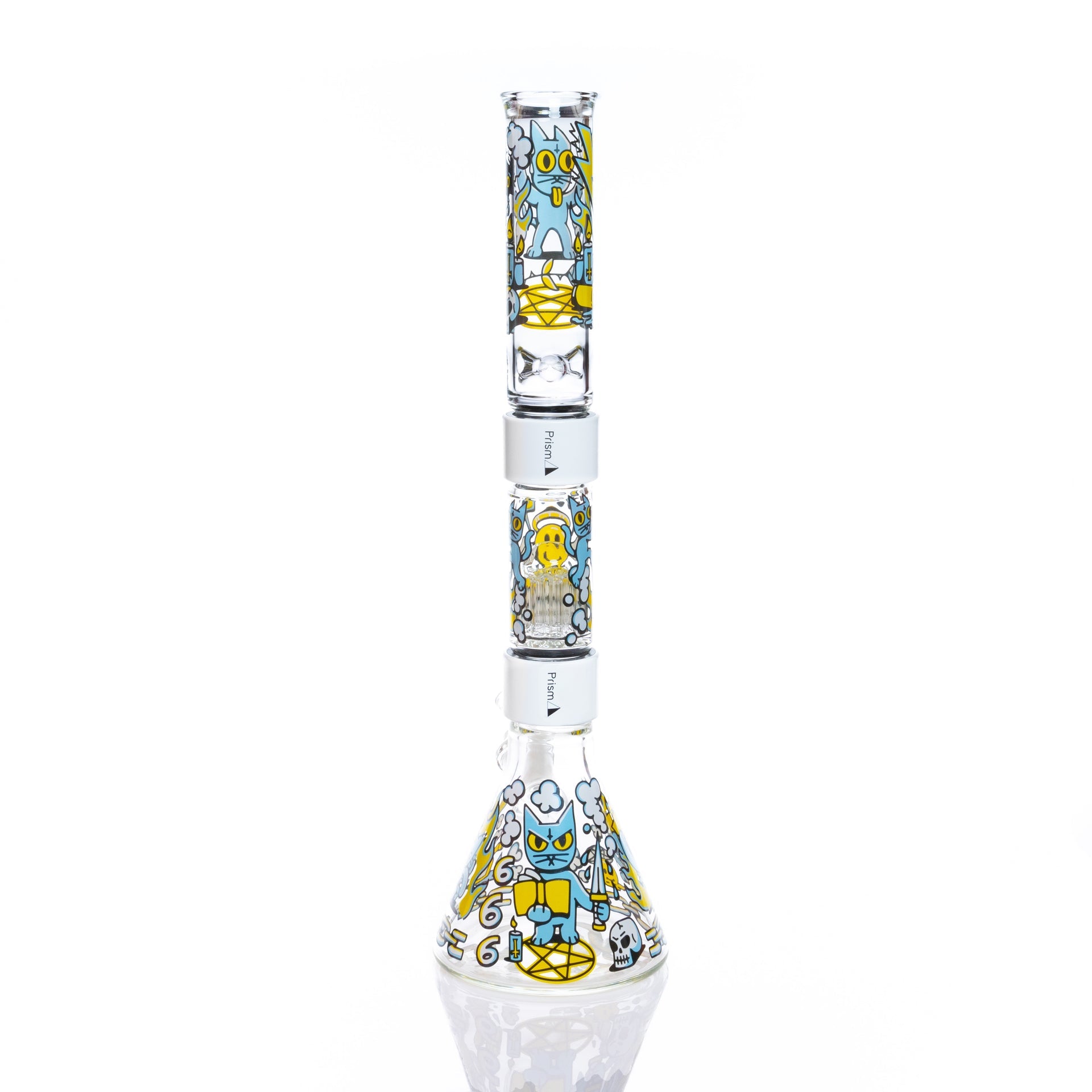 We’ve teamed up with Philly’s own The 666 Cat to bring you this wickedly cool collab! Featuring the mischievous, devilish feline from the local artist’s iconic designs, this Prism Classic piece is perfect for those who embrace the dark and mysterious. The occult-inspired artwork pairs with a percolator for smooth, filtered hits—because even little devils deserve a clean rip. With our modular bong system, swapping parts, customizing, and cleaning is effortless, plus it’s easy to take on the go. Unleash your inner rebel and let the 666 Cat Beaker Double Stack cast a spell on your collection!